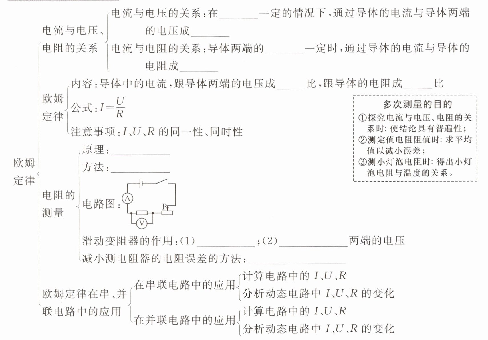 电阻 正比 电压 反比 正 反 $R=\frac{U}{I}$ 伏安法 保护电路 改变电阻器 多次测量求平均值