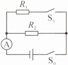 10. (2024·昭通模拟)如图所示的电路,已知定值电阻 $R_{2}$ 的阻值为 10 Ω,开关 $S_{0}$ 闭合、$S_{1}$ 断开时,电流表的示数为 0.5 A;开关都闭合时,电流表的示数为 0.7 A。求: