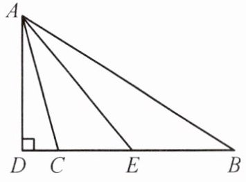 2. 如图,在 $ \triangle ABC $ 中,$ AD \perp BC $,$ AE $ 平分 $ \angle BAC $,$ \angle B = 70^{\circ} $,$ \angle C = 30^{\circ} $。