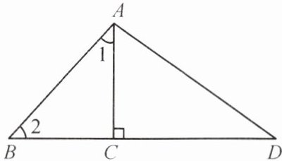 1. 如图,$AC\perp BD$,$\angle 1=\angle 2$,$\angle D=35^{\circ}$,求$\angle BAD$的度数.