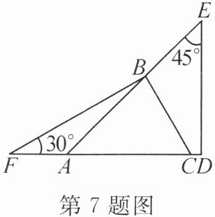 7. (昆明西山区期末)将一副三角板按照如图方式摆放,则∠FBA的度数为 (