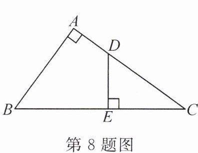 8. (昭通昭阳区期末改编)如图,∠BAC=90°,DE⊥BC,垂足为E,则下列说法正确的是 (