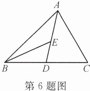 6. (云南民大附中期中)如图,在△ABC中,D,E分别是BC,AD的中点,$S_{△ABC}=4 cm²,$则$S_{△ABE}=$