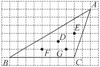 2. 如图所示的网格由边长相同的小正方形组成,点 $ A,B,C,D,E,F,G $ 在小正方形的格点上,则 $ \triangle ABC $ 的重心是(