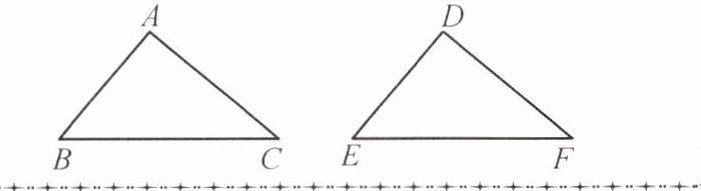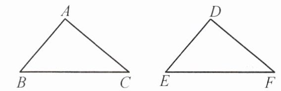 如图,若$\triangle ABC\cong\triangle DEF$,则$AB = $_____,$AC=$_____,$BC=$_____;$\angle A=$_____,$\angle B=$_____,$\angle C=$_____。