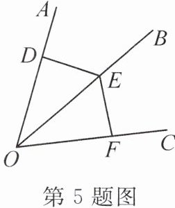 5.(云南中考)如图,OB平分∠AOC,D,E,F分别是射线OA、射线OB、射线OC上的点,D,E,F与点O都不重合,连接ED,EF.若添加下列条件中的某一个就能使△DOE≌△FOE,你认为要添加的那个条件是 (