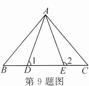 9. 如图,AB = AC,AD = AE,BE = CD,∠2 = 110°,∠BAE = 60°,下列结论错误的是(