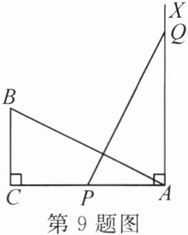 9. 如图,∠C=90°,AC=10,BC=5,AX⊥AC,点 P 和点 Q 从点 A 出发,分别在线段 AC 和射线 AX 上运动,且 AB=PQ,则当 AP 的长为