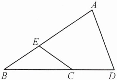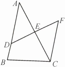∴∠A = ∠ECF. 在 △ADE 和 △CFE 中,$ \begin{cases} ∠A = ∠ECF \\ ∠AED = ∠CEF \\ DE = FE \end{cases} $