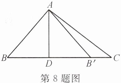 8. (哈尔滨中考)如图,在 Rt△ABC 中,∠BAC=90°,∠B=50°,AD⊥BC,垂足为 D,△ADB 与△ADB'关于直线 AD 对称,点 B 的对称点是点 B',则∠CAB'的度数为(
