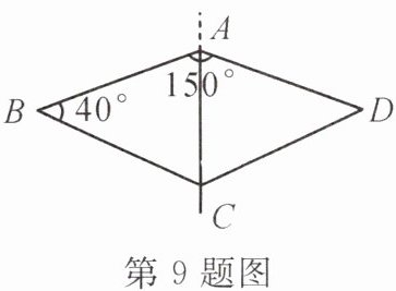 9. 如图,一种滑翔伞的形状是左右成轴对称的四边形 ABCD,其中∠BAD=150°,∠B=40°,则∠ACD 的度数是
