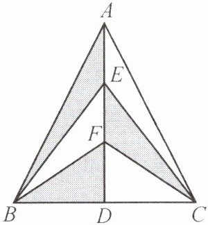 10. 如图,△ABC 是轴对称图形,且直线 AD 是△ABC 的对称轴,点 E,F 是线段 AD 上的任意两点.若△ABC 的面积为 12 cm²,求图中阴影部分的面积之和.