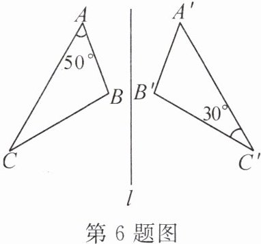 6. 如图,△ABC 与△A'B'C'关于直线 l 对称,∠A=50°,∠C'=30°,则∠B 的度数为