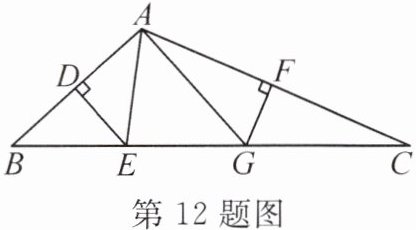 12. 如图,在△ABC中,BC=10,AB的垂直平分线分别交AB,BC于点D,E,AC的垂直平分线分别交AC,BC于点F,G,则△AEG的周长是