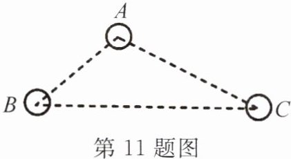 11. (昆明十中期中)如图,有A,B,C三个居民小区,现决定在三个小区之间修建一个购物超市,使超市到三个小区的距离相等,则超市应建在(