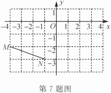 7. (宣威期中)已知直线$MN$在平面直角坐标系中的位置如图所示,线段$M_1N_1$与$MN$关于$y$轴对称,则点$M$的对应点$M_1$的坐标为