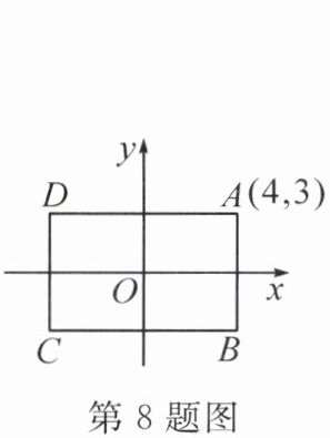 8. (教材P76习题T3变式)如图,分别以长方形$ABCD$的两条对称轴为$x$轴和$y$轴建立平面直角坐标系。若点$A$的坐标为$(4,3)$,则长方形另外三个顶点的坐标分别为$B$