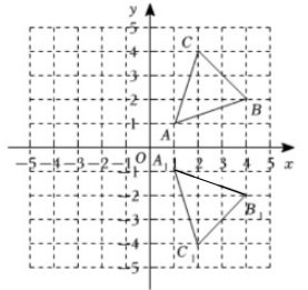 (1)作出$\triangle ABC$关于$x$轴对称的$\triangle A_1B_1C_1$;