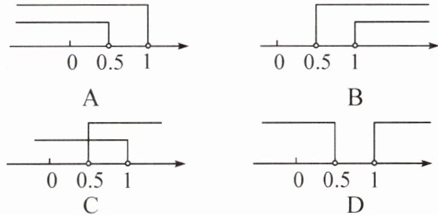 12. 若点$M(1-2m,m-1)$关于$y$轴对称的点在第一象限,则$m$的取值范围在数轴上表示正确的是(