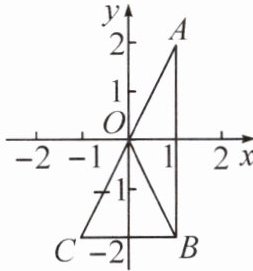 13. (教材P75练习T2变式)如图,$x$轴是$\triangle AOB$的对称轴,$y$轴是$\triangle BOC$的对称轴,点$A$的坐标为$(1,2)$,则点$C$的坐标为