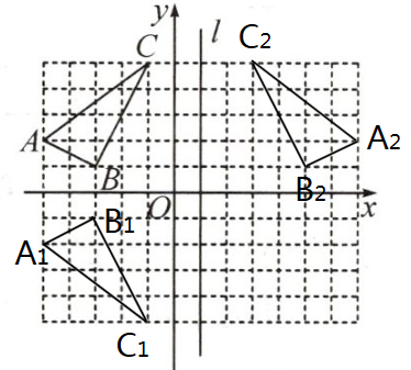 )。(2)直线$l$上各点的横坐标都是1,作出$\triangle ABC$关于直线$l$对称的$\triangle A_2B_2C_2$,并直接写出点$A_2$,$B_2$,$C_2$的坐标:$A_2$(
