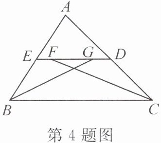 4. (昆明五华区期中)如图,在 $\triangle ABC$ 中,$ED// BC$,$\angle ABC$ 和 $\angle ACB$ 的平分线分别交 $ED$ 于点 $G$,$F$。若 $FG = 4$,$ED = 8$,则 $EB + DC=$