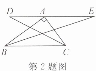 2. 如图,在 $\triangle ABC$ 中,$\angle BAC = 90^{\circ}$,$AC = 6$,$AB = 8$,过点 $A$ 的直线 $DE// BC$,$\angle ABC$ 与 $\angle ACB$ 的平分线分别交 $DE$ 于点 $E$,$D$,则 $DE=$(