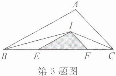3. 如图,点 $I$ 为 $\triangle ABC$ 三个内角平分线的交点,$IE// AB$,$IF// AC$,$BC = 4$,$AB = 3$,$AC = 2$,则图中阴影部分的周长为(