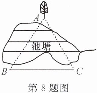 8.(宜昌中考)如图,在一个池塘两旁有一条笔直小路(B,C为小路端点)和一棵小树(A为小树位置). 测得的相关数据如下:∠ABC=60°,∠ACB=60°,BC=48m,则AC=