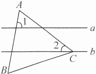 4. 如图,直线a//b,等边三角形ABC的顶点C在直线b上,∠2=40°,则∠1的度数为