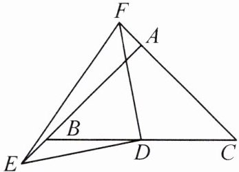 5. 如图,在 $ \triangle ABC $中,$ \angle BAC = 90^{\circ} $,$ AB = AC $,D 为 BC 的中点. 若 E,F 分别为 AB,CA 延长线上的点,仍有 $ BE = AF $,则 $ \triangle DEF $是否仍为等腰直角三角形?证明你的结论.
