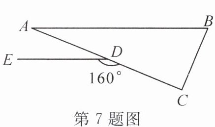7. (仙桃中考)如图,在△ABC中,∠C = 90°,点D在AC上,DE // AB。若∠CDE = 160°,则∠B的度数为(