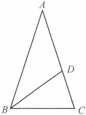 5. 如图,在△ABC中,∠A = 36°,∠C = 72°,BD平分∠ABC,求∠DBC的度数。