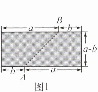 1. 如图1,把一张长方形纸片沿着线段AB剪开,把剪成的两张纸片拼成如图2所示的图形。