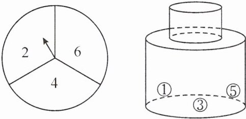 12. (昆明中考)有一个可自由转动的转盘,被分成了三个大小相同的扇形,分别标有数字 2,4,6;另有一个不透明的瓶子,装有分别标有数字 1,3,5 的三个完全相同的小球.小杰先转动一次转盘,停止后记下指针指向的数字(若指针指在分界线上则重转),小玉再从瓶子中随机取出一个小球,记下小球上的数字.