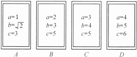 11. (曲靖中考)数学课上,李老师准备了四张背面看上去无差别的卡片 A,B,C,D,每张卡片的正面标有字母 a,b,c 表示三条线段(如图),把四张卡片背面朝上放在桌面上,李老师从这四张卡片中随机抽取一张卡片后不放回,再随机抽取一张.