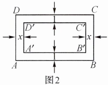 (2)如图2,$x$为多少时,图中的两个矩形$ABCD$与$A'B'C'D'$相似?