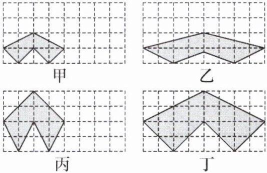 12. (连云港中考)下列网格中各个小正方形的边长均为$1$,阴影部分图形分别记作甲、乙、丙、丁,其中是相似形的为( )