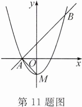 11. 如图,抛物线的顶点$M$在$y$轴上,抛物线与直线$y = x + 1$相交于$A$,$B$两点,且点$A$在$x$轴上,点$B$的横坐标为$2$,那么抛物线的函数关系式为
