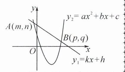 ;(3)如图,直线 $ y_{1}=kx + h $ 与抛物线 $ y_{2}=ax^{2}+bx + c $ 交于点 $ A(m,n),B(p,q) $,则方程 $ ax^{2}+bx + c = kx + h $ 的根为 $ x_{1}=m,x_{2}=p $,不等式 $ y_{1}\lt y_{2} $ 的解集为 $ x\lt m $ 或 $ x\gt p $,不等式 $ y_{1}\gt y_{2} $ 的解集为