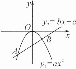 1. 如图,抛物线 $ y_{1}=ax^{2} $ 与直线 $ y_{2}=bx + c $ 的两个交点坐标分别为 $ A(m,-\frac{9}{4}),B(1,-1) $.