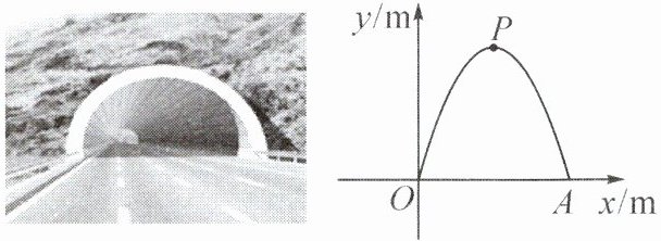 2. 如图所示,公路隧道的截面为抛物线形,线段 $ OA $ 表示水平的路面,以点 $ O $ 为坐标原点,$ OA $ 所在直线为 $ x $ 轴,以过点 $ O $ 垂直于 $ x $ 轴的直线为 $ y $ 轴,建立平面直角坐标系. 若 $ OA = 10$ m,抛物线的顶点 $ P $ 到 $ OA $ 的距离为 $ 9$ m,则抛物线对应的函数解析式为 (