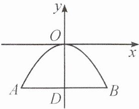 1. (铜仁中考)河北省赵县的赵州桥是近似的抛物线形,建立如图所示的平面直角坐标系,其函数关系式为 $ y = -\frac{1}{25}x^{2} $. 当水面离桥拱顶的高度是 4 m 时,这时水面宽度 $ AB $ 为 (