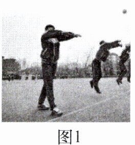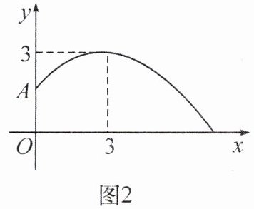 17. (昆明寻甸县月考)掷实心球是钦州市中考体育科选考项目. 图 1 是几名女生投掷实心球,实心球行进的路线是一条抛物线. 其中一名女生掷出的实心球行进高度 $ y(m) $ 与水平距离 $ x(m) $ 之间的函数关系如图 2 所示,实心球抛出时起点 $ A $ 的高度为 $ \frac{5}{3} m $,当水平距离为 $ 3 m $ 时,实心球行进至最高点 $ 3 m $ 处.