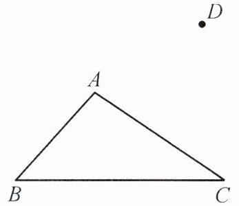 2. 如图,$ \triangle ABC $ 绕点 $ C $ 旋转后,顶点 $ A $ 的对应点为点 $ D $,试确定顶点 $ B $ 对应点的位置以及旋转后的三角形。
