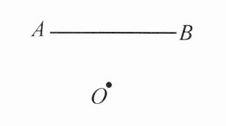 1. 如图,已知线段 $ AB $ 及点 $ O $,作线段 $ AB $ 绕点 $ O $ 顺时针旋转 $ 90^{\circ} $ 的图形。