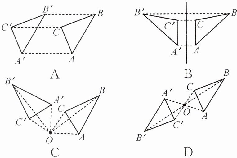 1. 下列各组图形中,△A′B′C′与△ABC 成中心对称的是( )