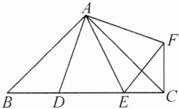11. 如图,在等腰直角三角形 ABC 中,∠BAC=90°,点 D,E 在边 BC 上,且∠DAE=45°,将△ABD 绕点 A 逆时针旋转 90°得到△ACF,连接 EF.