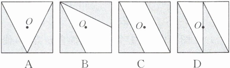 2. (广州中考)下列图案中,点 O 为正方形的中心,阴影部分的两个三角形全等,则阴影部分的两个三角形关于点 O 中心对称的是( )