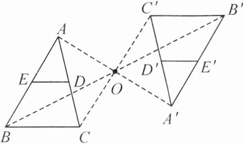 3. 如图,△ABC 与△A'B'C'成中心对称,ED 是△ABC 的中位线,E'D'是△A'B'C'的中位线.若 BC=4,则 E'D'=____.